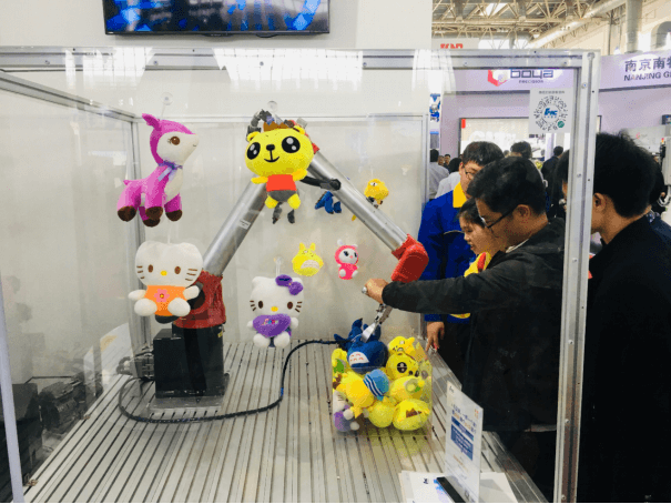 展出的人機互動“抓娃娃”機器人吸引了大批觀眾的參與體驗
