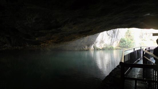 游覽差不多2個小時,快出洞口百余米,洞壁上鑲嵌有關地質溶洞的知識圖,包括洞穴發育史,洞穴氣候,地球的形成與演化,地質年代,洞穴生物,洞穴植物,洞穴醫療等。快到洞口時,外面的喧囂聲傳入耳膜,與之前洞內的安靜形成鮮明對比。強烈的太陽光照射進來很刺眼,大家逐漸從洞內大自然賦予內心的寧靜中回過神來,用手遮擋眼睛,高高興興地走出隱水洞。